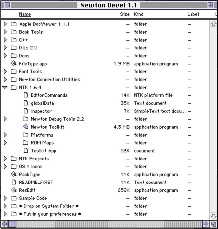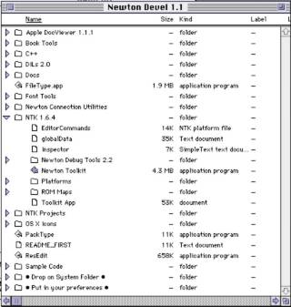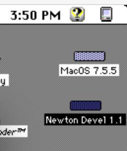 - on unna.org, find the classic Mac disk images MacOS 7.5.5 and NewtonDevel1.1; add a ROM to BasiliskII (search for Performa.rom) and Einstein (serach for 717006.rom), and you are ready to develop